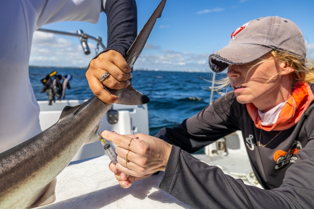 Graduate students working on SRC projects have the opportunity to mentor undergraduate interns, lead shark research trips, and engage with our research and educational partners. SRC’s graduate students have the unique opportunity to explore their research interests, gain leadership skills, and define their career objectives as a part of a supportive, tight-knit lab atmosphere. Many SRC alumni have gone on to successful careers in marine science. Graduate students join SRC through the Rosenstiel School of Marine and Atmospheric, and Earth Science’s Masters of Professional Science and the Master of Science programs, as well as the Abess Center Environmental Science and Policy Ph.D. program.